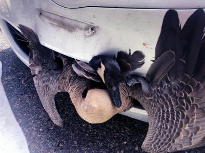 美国佛蒙特州野鹅遭货车撞 插入水箱罩司