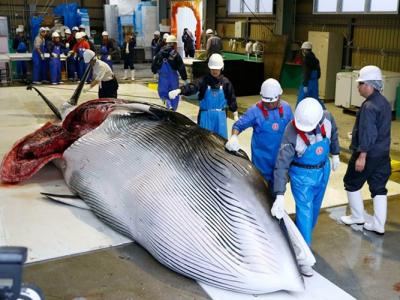 日本重启商业捕鲸 45名小学生观小须鲸屠