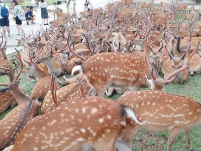 日本奈良大批鹿群草坪聚集 网民:等待传