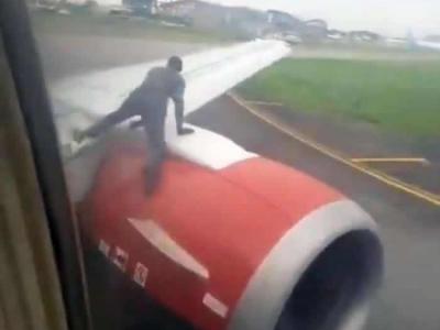尼日利亚男子爬上穆尔塔拉·穆罕默德国际机场准备起飞的客机机翼:“想坐飞机去加纳...