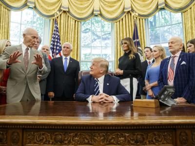 人类登月50周年:特朗普在白宫接见阿波罗11号宇航员及家属 称直接去征服火星(神秘...