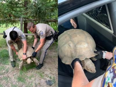 美国加州重逾110公斤的巨型乌龟离家出走 两小时后坐巡逻车回家(神秘的地球uux.cn报...
