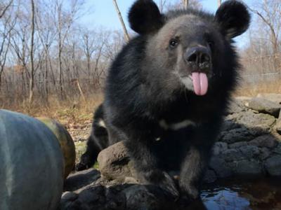 俄罗斯滨海边疆区“豹之乡”国家公园科研人员收集相机陷阱数据时旁边树上掉下小亚洲...