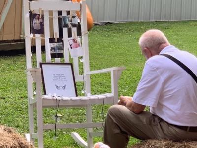 美国西维珍尼亚州婚礼上祖父独坐祖母遗照