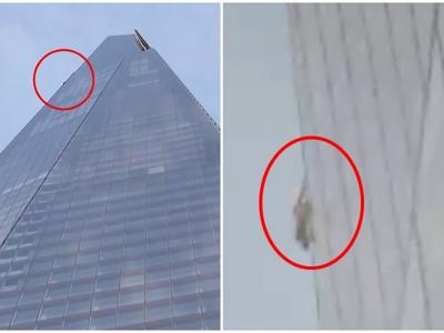 无任何安全措施 男子凌晨勇攀英国伦敦最高建筑物伦敦桥塔碎片大厦外墙光滑透明(左...