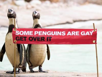 伦敦动物园在企鹅园树立支持性小众的横额。(神秘的地球uux.cn报道)英国伦敦将于周...
