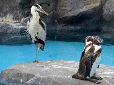 日本山口县德山动物园“不速之客”苍鹭入