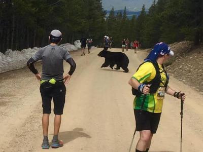 美国科罗拉多州黑熊乱入马拉松一起跑(PHOTO COURTESY OF QUENTIN GENKE)(神秘的地...