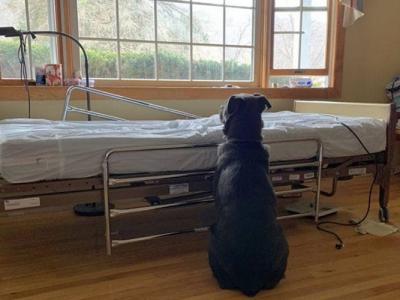 美国拉布拉多混种犬不知主人离世 守候空床背影令人心碎(神秘的地球uux.cn报道)美...
