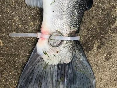 美国密歇根湖捕鱼比赛捕到一条尾巴上绑有