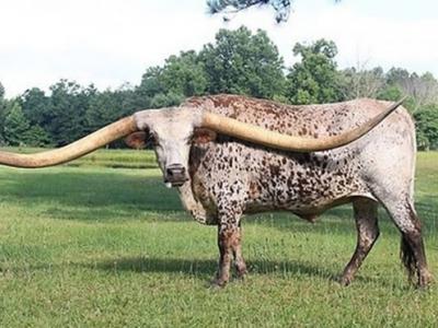 美国亚拉巴马州一头德克萨斯长角牛角长逾
