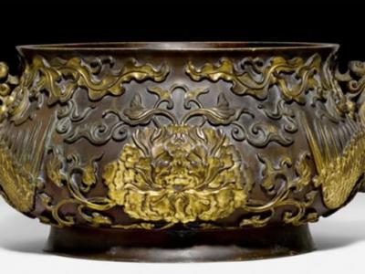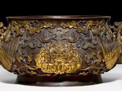 瑞士家庭装网球的旧铜钵原来是珍贵的清朝宫廷御用“牡丹凤凰”鎏金宣德炉(神秘的地...