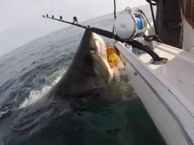 美国新泽西州男子在马纳斯宽湾钓鱼引来超级大白鲨视频:美国新泽西州男子在马纳斯宽...