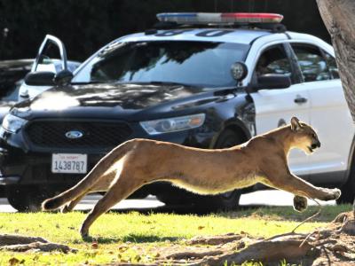 美国加州洛杉矶的布兰特伍德居民区出现一只成年的雄性山狮(神秘的地球uux.cn)据E...