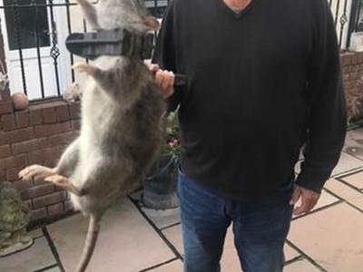 英国82岁老翁抓到一只45公分长的巨大老鼠王