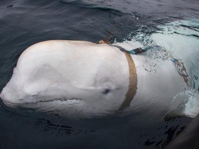 挪威北极海域出现行为诡异的白鲸 专家怀疑可能受过俄罗斯海军...