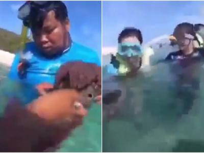泰国男子采摘海葵给中国游客把玩 遭网民
