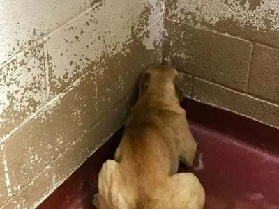 美国乔治亚州收容所抑郁流浪狗终日藏起尾巴躲墙角 获好心人收...