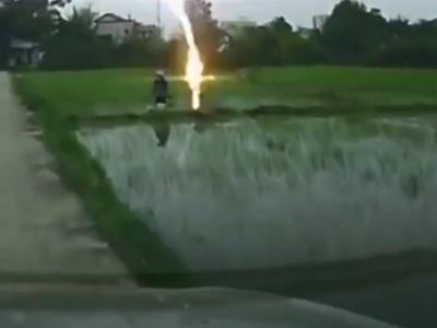 江西省吉安市泰和县农民插秧忽遭闪电击中