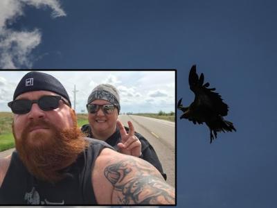 美国堪萨斯州男子驾驶重型摩托车时遭秃鹰袭击 冲向路边夫妇双...