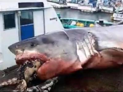 日本外海2吨重大白鲨被猎物海龟噎死