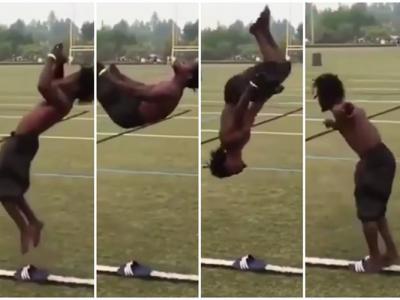 男子耍杂技 后空翻完美落地顺便穿回拖鞋