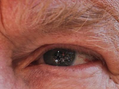 美国总统特朗普眼睛中的媒体:眼珠反射白