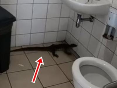 南非德班市加油站厕所被一只尼罗河巨蜥闯入
