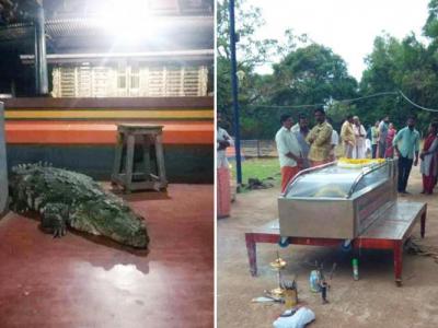 印度喀拉拉邦小镇库巴拉寺庙供养的“素食”鳄鱼Babiya去世(神秘的地球uux.cn)据C...