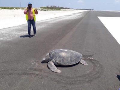 马尔代夫诺努环礁的马法鲁机场绿蠵龟妈妈上岸产蛋发现老家变成...