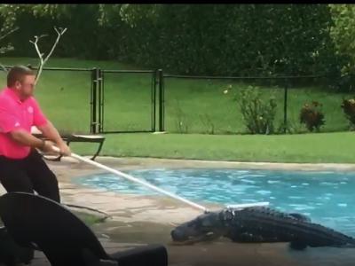 美国佛罗里达州2.4米长鳄鱼爬过围栏潜入私人泳池畅泳(神秘的...