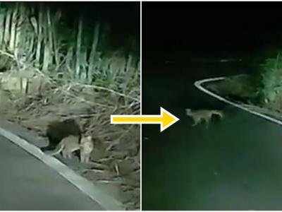台湾濒危小石虎险被撞 萌样呆望车灯后速逃