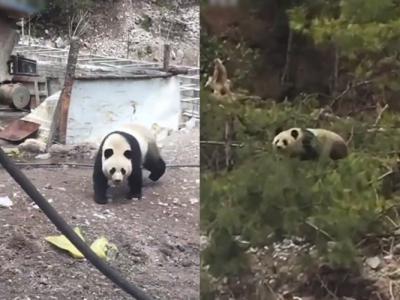 四川省阿坝州九寨沟县一只大熊猫闯入村落