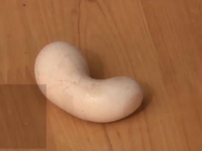 刘大姐在自家鸡窝里捡到一颗外型像是花生的畸形蛋。觉得造型十...