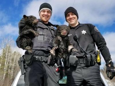 美国威斯康辛州2只小熊被困排水管内 幸得两名警察经过(神秘的...
