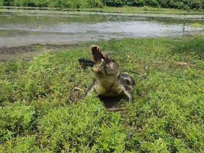 澳洲男子钓起的尖吻鲈被4米巨鳄追扑上岸