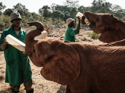 肯尼亚大象孤儿院职员化身象妈妈