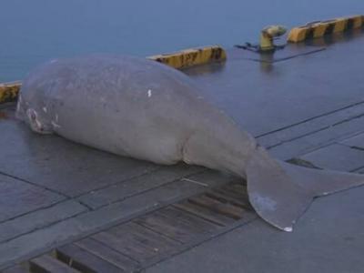 日本冲绳海面惊现3米长濒危海洋生物儒艮