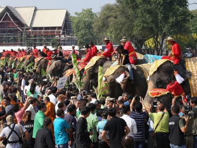 泰国一年一度大象节 喃邦、清迈办自助餐