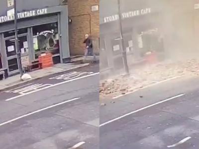 英国伦敦东部哈克尼男子经过咖啡店时屋檐突然倒塌 幸运与死神...