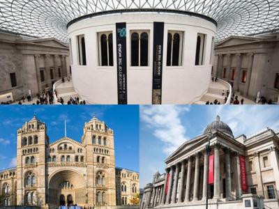 大英博物馆(上图)、自然历史博物馆(左下图)及英国国家艺术馆(右下图)推新招收...