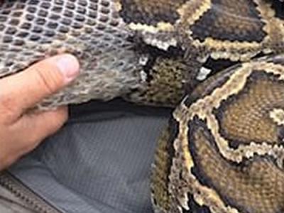 南美洲智利缅甸巨蟒脱皮遇到困难 兽医看
