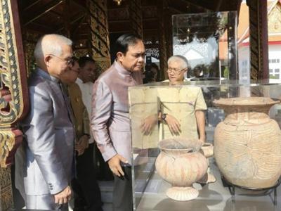探叻(左一)与帕拉育(左二)一同观看文物。中部出土的瓷器及...