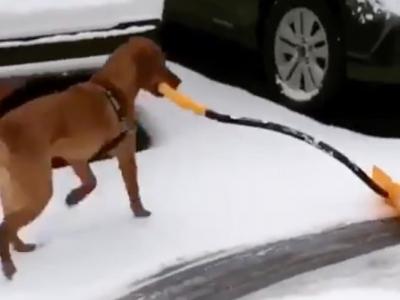 美国麻省拉布拉多犬“亲口”帮主人铲雪 网民大赞感自愧不如视...