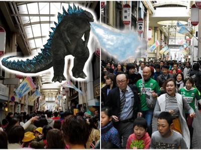 “哥斯拉来啦!”日本岐阜市市民在柳濑商店街狂奔民众齐心支持...