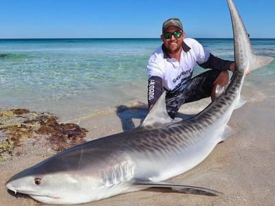 虎鲨搁浅澳洲珀斯沙滩挣扎 男子徒手抱住