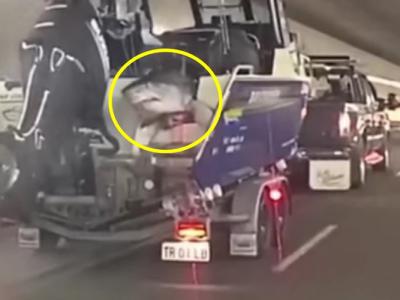 澳洲悉尼货车拖车杂物中露出巨大鲨鱼