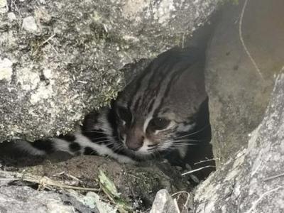 云南省红河州豹猫误中非法捕猎者陷阱 当地村民发现后报警营救...