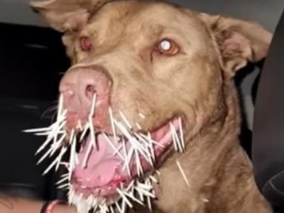 比特犬激战豪猪 遭猛刺全身死亡