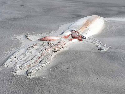 新西兰沙滩上发现4公尺长“深海巨兽”大王乌贼尸体(Photo / Anton Donaldson)(神秘...